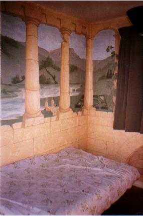 Richard Langley's real passion is painting and he has used his artistic ability to great effect in a number of his interiors. A mural can take your room anywhere, a London restaurant overlooking the picturesque scenery of Umbria in Italy, a bedroom containing a Romanesque follie, or a bathroom open to the view over the cliffs of East Sussex. The only limit is your imagination. Even using cartoon or fantasy murals to transport you out of this world.